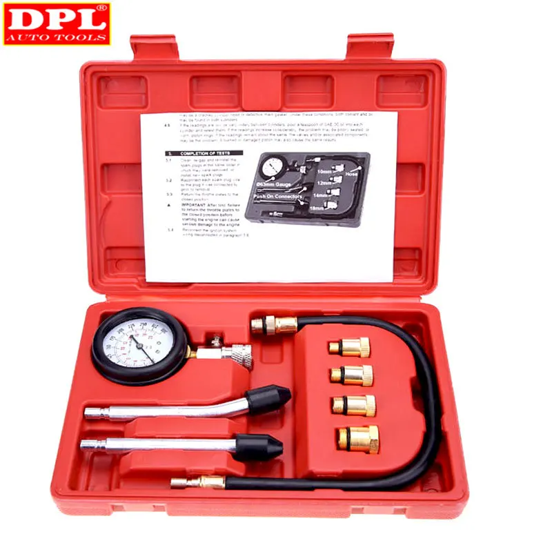 Можно быстро установить на ваш двигатель/автомобиль, получить точные показания в клапане, поршневых кольцах, цилиндровых борах или накладок головки.-Манометр с двумя испытательными давлением: 0 - 300 PSI / 0 - 21 кг/см2.Сливной клапан с полное покрытие медью, никелем, анти-окислению и коррозии.-Резьба M10 подходит для мотоциклов, резьба M12 / M14 / M18 подходит для автомобилей.-С резиновой защитой для предотвращения царапин.-Поставляется с 2 резиновыми конусами, которые не должны быть втянуты в головку, может проверить сжатие практически на любом двигателе.-Диаметр манометра: 75 мм, четыре размера резьбы: M10 x 1,0 мм, M12 x 1,25 мм, M14 x 1,25 мм, M18 x 1,5 мм.-Общая длина шланга: 430 мм, Длина трубки давления: 150 мм, угловая длина трубки давления: 160 мм.