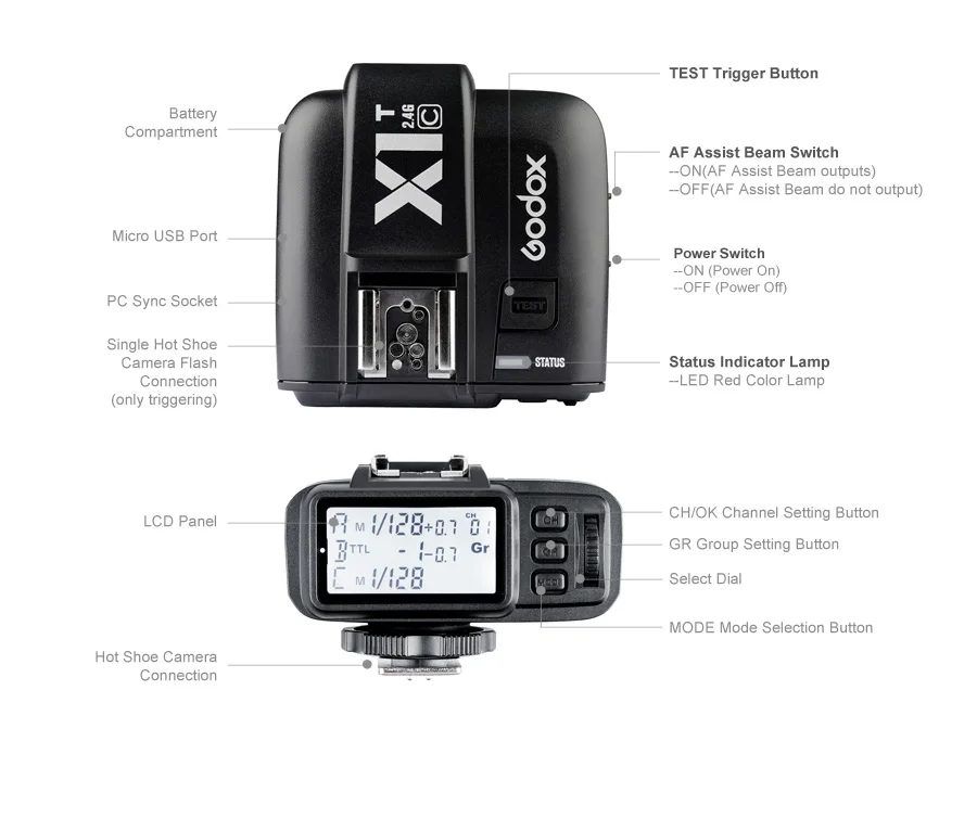 -Используя беспроводную систему Godox 2,4G X, GODOX V850II может быть запущен и управляется только X1T-C или X1T-N X1T-S передатчиком (продается отдельно).