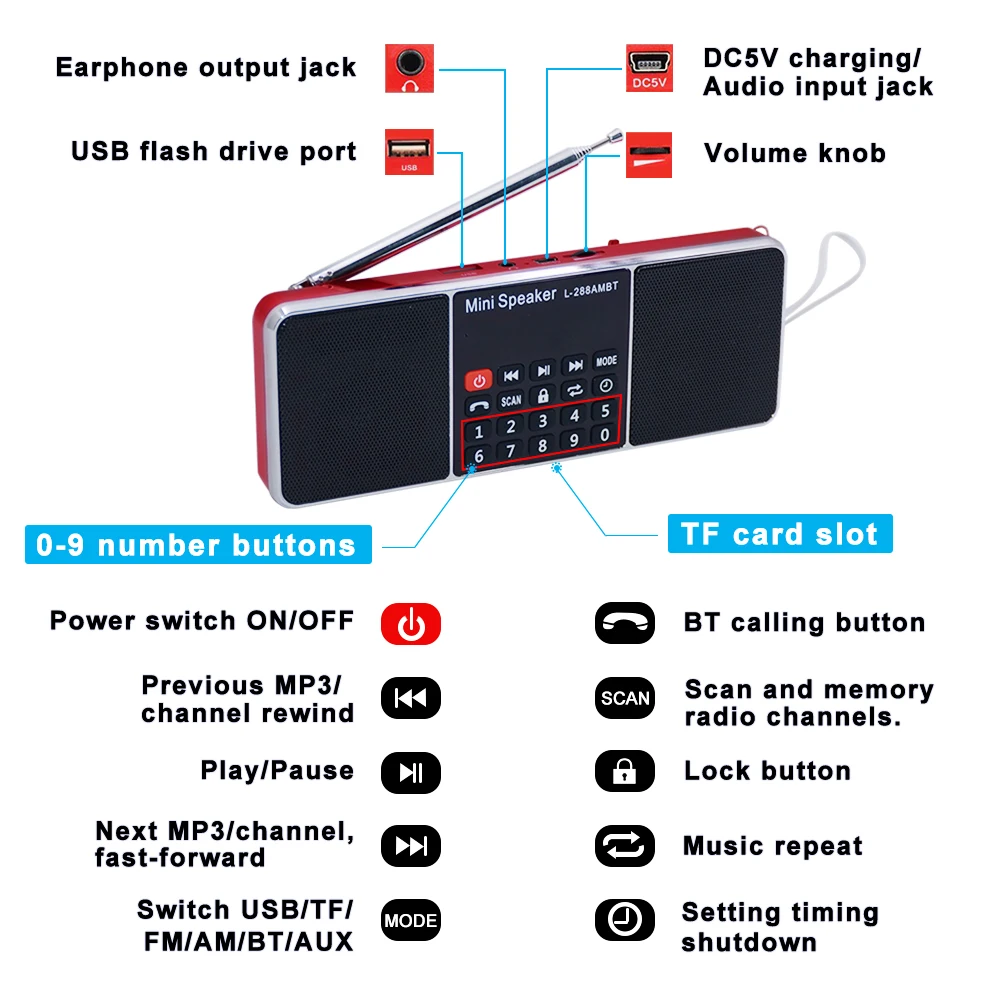 Цифровой портативный Радиоприемник Lefon, AM, FM, Bluetooth-колонка, стерео MP3-плеер, поддержка TF, SD-карт, USB-накопитель, светодиодный дисплей, громкая связь