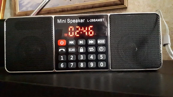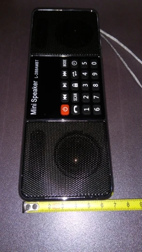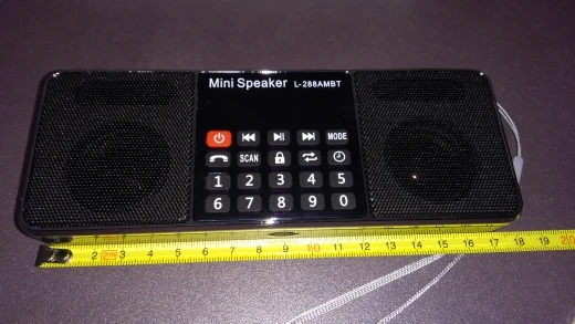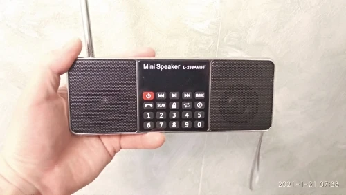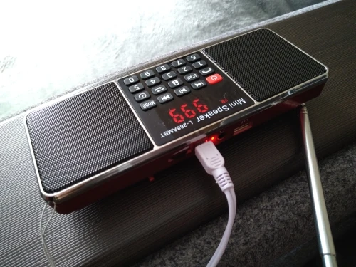 Курьер привез посылку на 4-й день после заказа. Красивый стильный приемник. Выполнен качественно. Все заявленные параметры присутствуют. Хорошая чувствительность в FM. Хорошо сопрягается со смартфоном по Bluetooth. Отличный звук. Прокручивает MP3 с карты памяти. Хоть база между динамиками маленькая, стереоэффект ощущается. Аккумулятор на 1200 мА/ч. Имеется индикатор заряда - светодиод в верхней части. Из минусов: 1. Плохая балансировка корпуса приемника по массе - имеет тенденцию заваливаться назад. 2. Корпус выполнен из белой пластмассы, цвет определяется цветом эмали. Похоже, что краска быстро облупится. 3. Пока не заметил возможности отключать индикацию светодиодов передней панели. Будут дополнительно подсаживать аккумулятор. В целом - приличный гаджет. Спасибо.