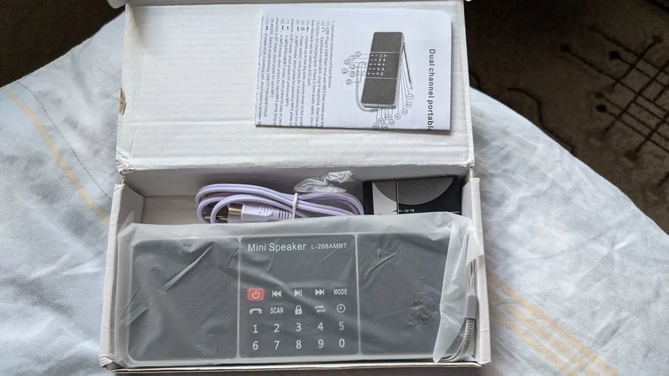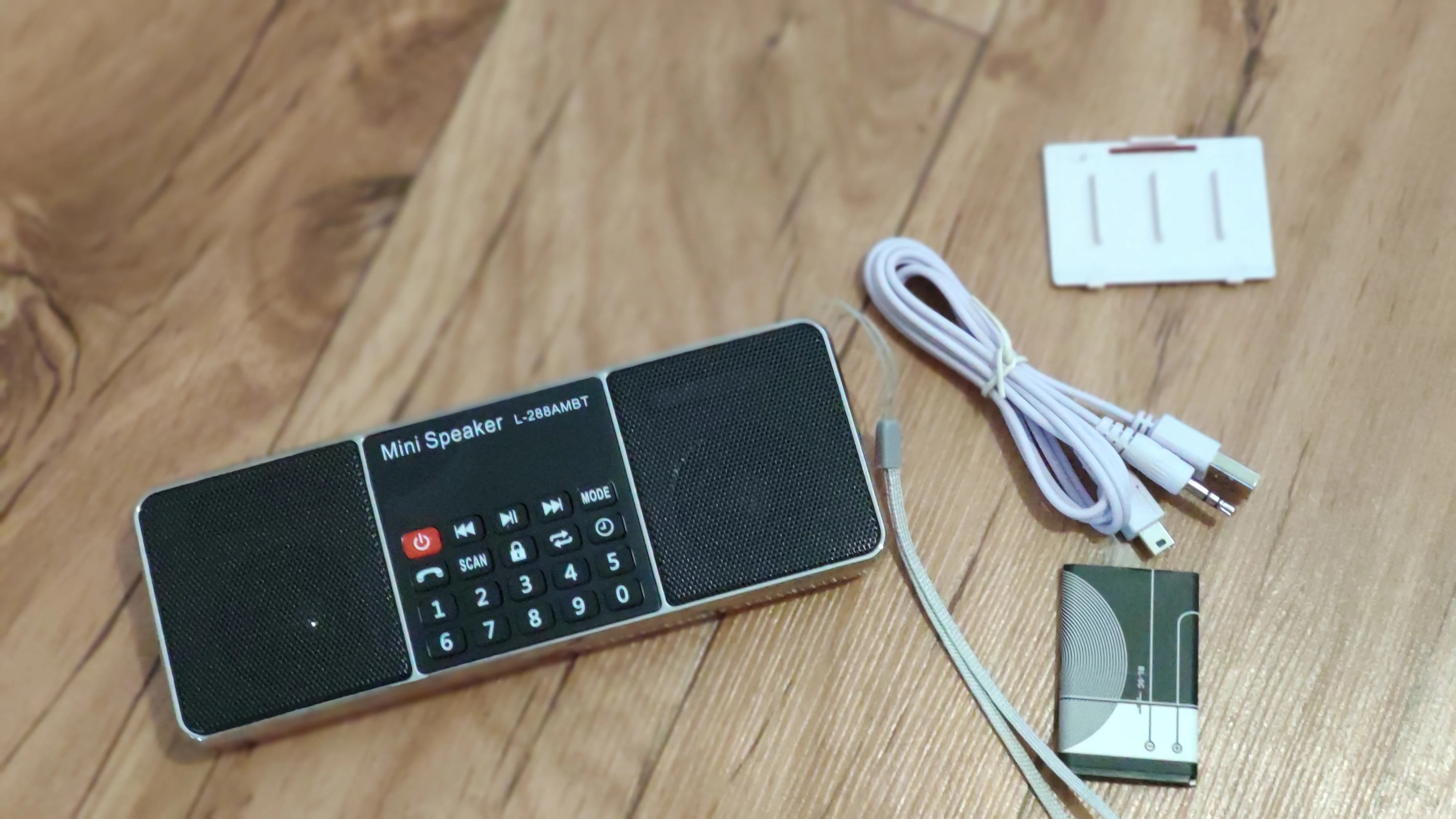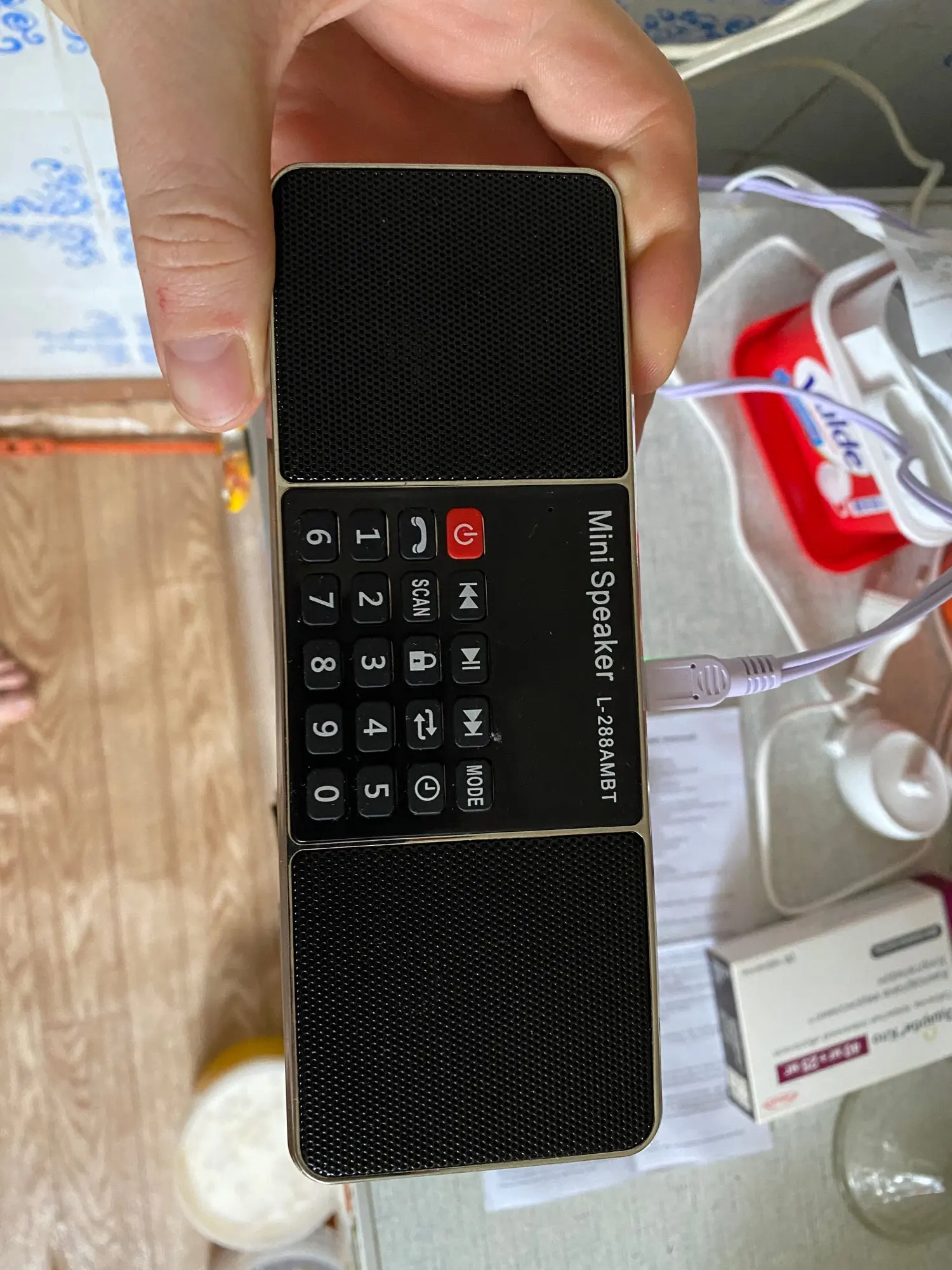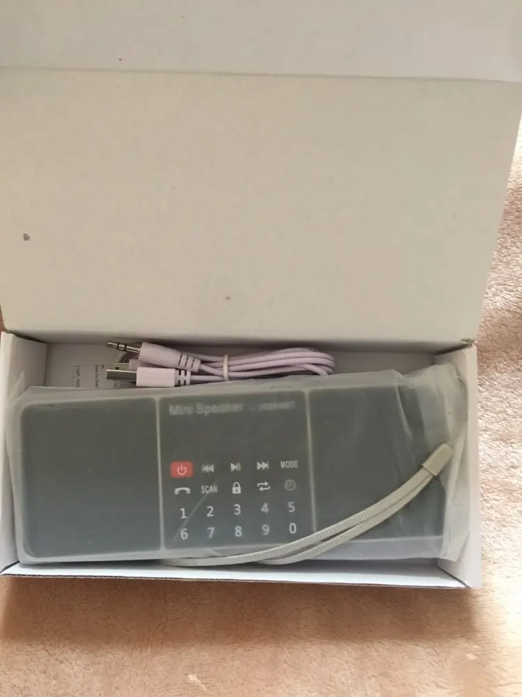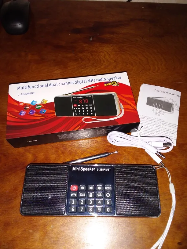 Доставлен за 5:дней в Московскую область курьером. Хороший прием FM, BT. Инструкция на англ., провод миниюсб AUX c подзарядкой. Колёсико громкости. Разъемы Usb, миниюсб, tfcard, 3.5мм на наушники. Громкий, ясный с басами но несколько грубоватый звук без вч, на любителя. Стерео. Ввод станций FM через номера после сканирования, либо числовым набором частоты, как на калькуляторе. Часов вроде нет, есть отсрочка выключения. Батарея телефонная bl5c, зарядка 5в 0.5А. Пока все замечательно.