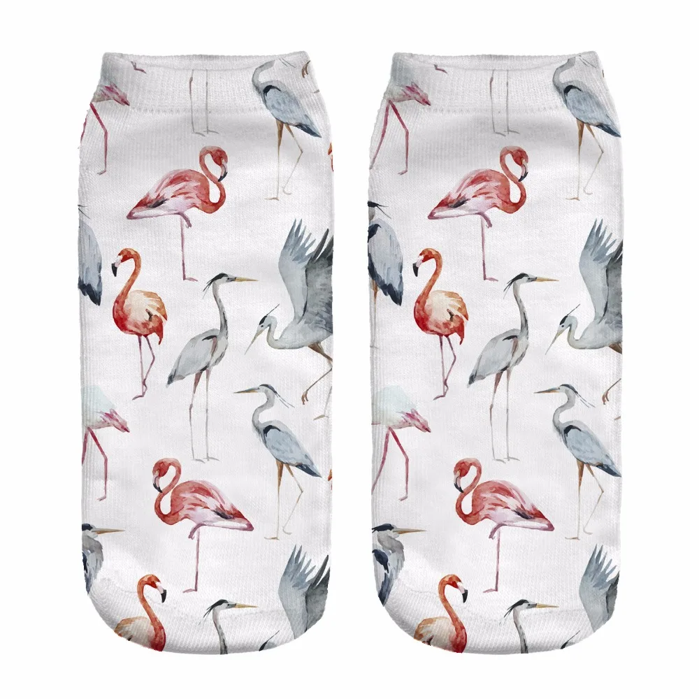 Носки Фламинго новые повседневные женские прочные носки из полиэстера с 3D принтом, милые носки с низким вырезом на лодыжке, повседневные носки для подростков