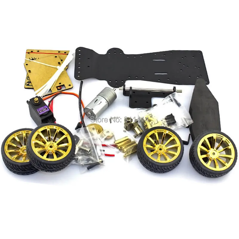 Описание: Это новая конструкция устройства позволяет ему двигаться с 4-х колесные шасси автомобиля, он отличается от обычного 4-х колесных дисков, этот автомобиль с задним приводом плюс спереди рулевого механизма для достижения автомобиля вперед, назад, поворот влево и вправо. Как и принцип профессионального дистанционного управления гоночными гонками, для управления направлением автомобиля используется два стержня через рулевое управление. Кроме того, механизм рулевого управления заднего колеса также был изменен. Алюминиевая крепежная деталь-это единое целое с мотором и мотор плотно взаимодействует с приводного вала. Мотор принимает цельнометаллический мотор-редуктор. Если вы заинтересованы в высокой скорости, до тех пор, пока двигатель диаметром 25 мм может быть. Заднее колесо оснащено двумя фланцевыми подшипниками для обеспечения более гибкого вращения двигателя. Из-за использования более драгоценных металлических деталей (подшипники, шестерня передач, шатун, металлический двигатель, рулевое колесо, многофункциональная Скоба и т. д.), что является дорогостоящим, пользователь может сравнить достоинства, конечно, на рынке также есть более дешевые аналогичные шасси, Качество изготовления совсем не на одном уровне. У нас есть только фиксированные монтажные отверстия для платформы arduino, если вы-другая платформа, вам нужно пробить отверстия или попробовать установить.