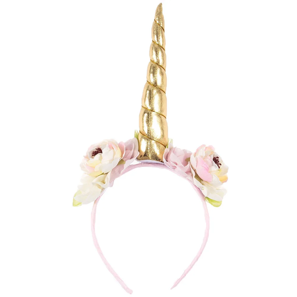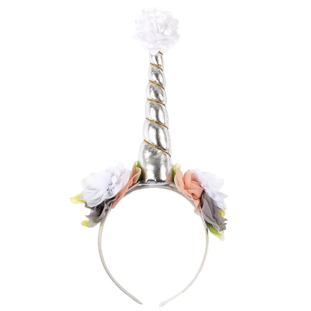 NISHINE новорожденный Единорог головная повязка день рождения шифоновая Цветочная Корона детская тиара ободок для волос Блестящий Прекрасный Детский аксессуар для волос