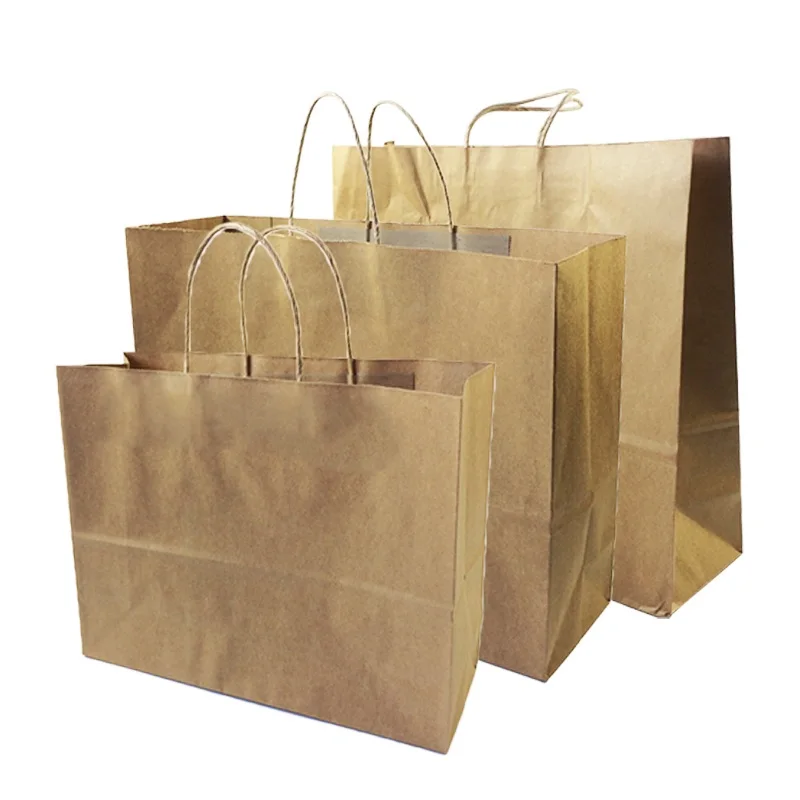 10 шт.лот, большой мешок из крафтовой бумаги с ручками, перерабатываемый мешок для модной одежды, обуви, подарочных магазинов, 8 размеров, Воловья кожа