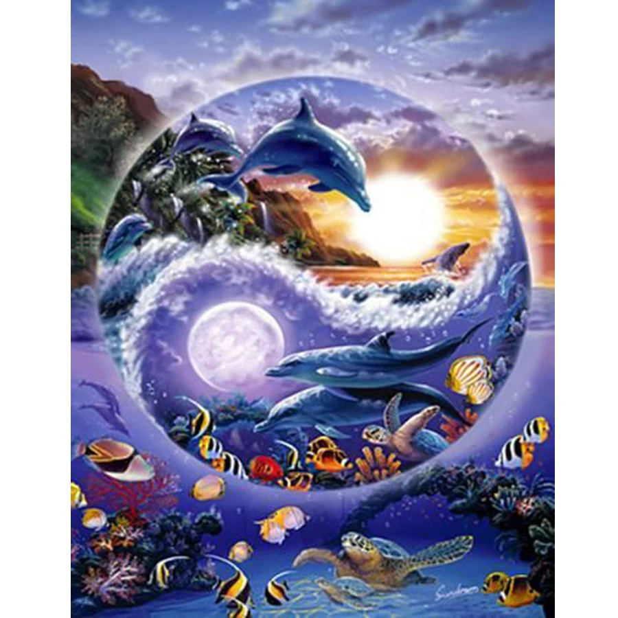 5D квадратная алмазная живопись дельфины, морские черепахи, вышивка крестом Инь и Ян Дельфины Набор для творчества вышивка Стразы домашний декор