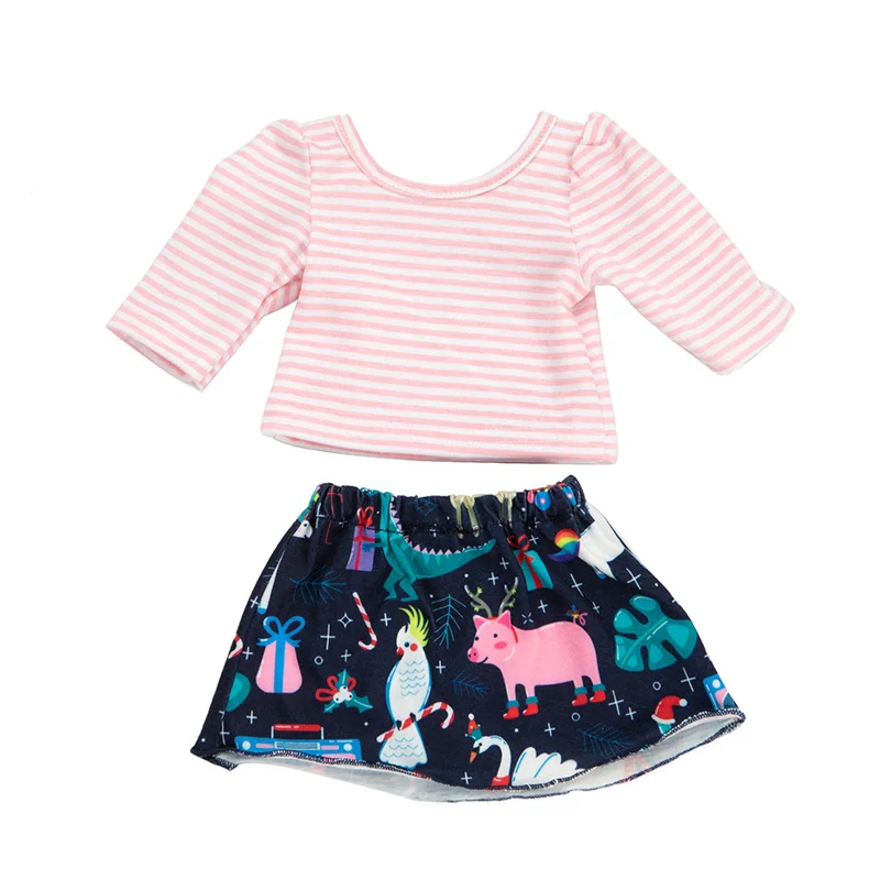 Синяя рубашка + джинсовое короткое платье + черные брюки для кукол рожденных 43 см Одежда для кукол 18 дюймов 45 см кукольный костюм для девочек