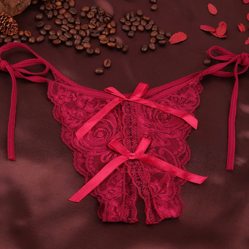 Розовые женские сексуальные кружевные трусики с открытой промежностью, женское нижнее белье с низкой талией, стринги, танга, женские экзотические трусики, интимное белье 064