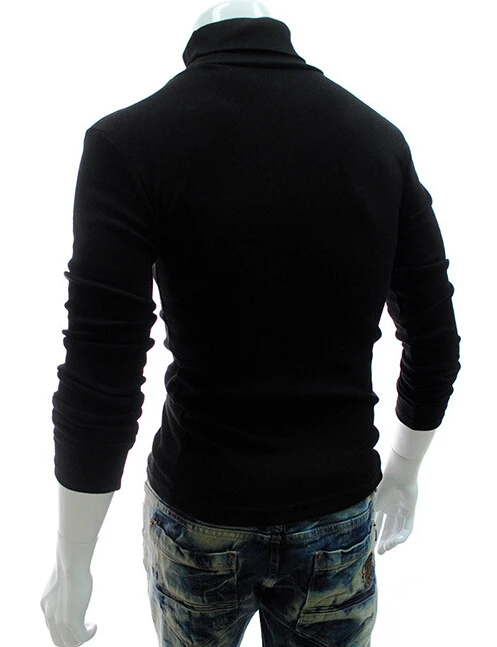 Мужской пуловер с высоким воротом, повседневный облегающий джемпер ...