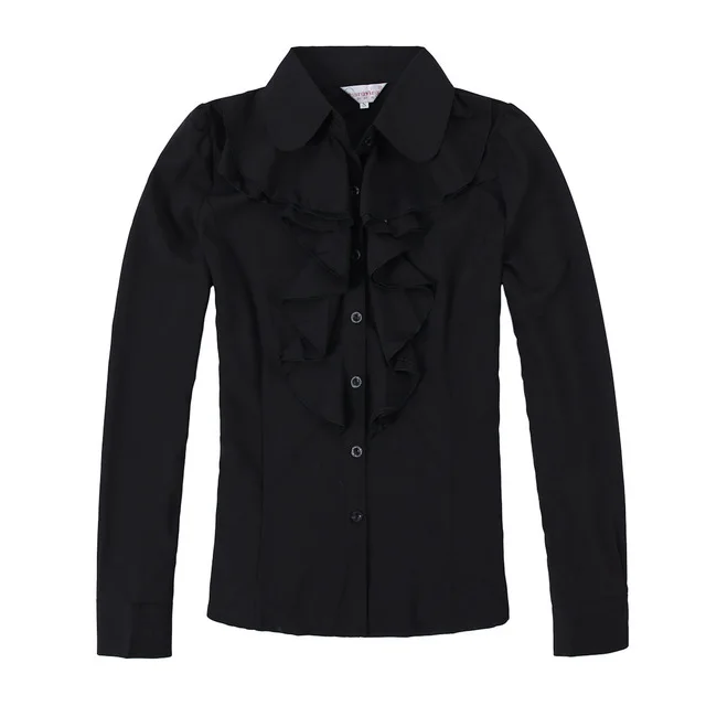 Женская шифоновая блузка с длинным рукавом, Офисная белая блузка с оборками и отложным воротником в Корейском стиле, весна-осень