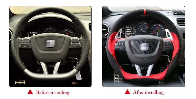 Черная замша красный кожаный чехол рулевого колеса автомобиля для Seat Leon 2009-2012
