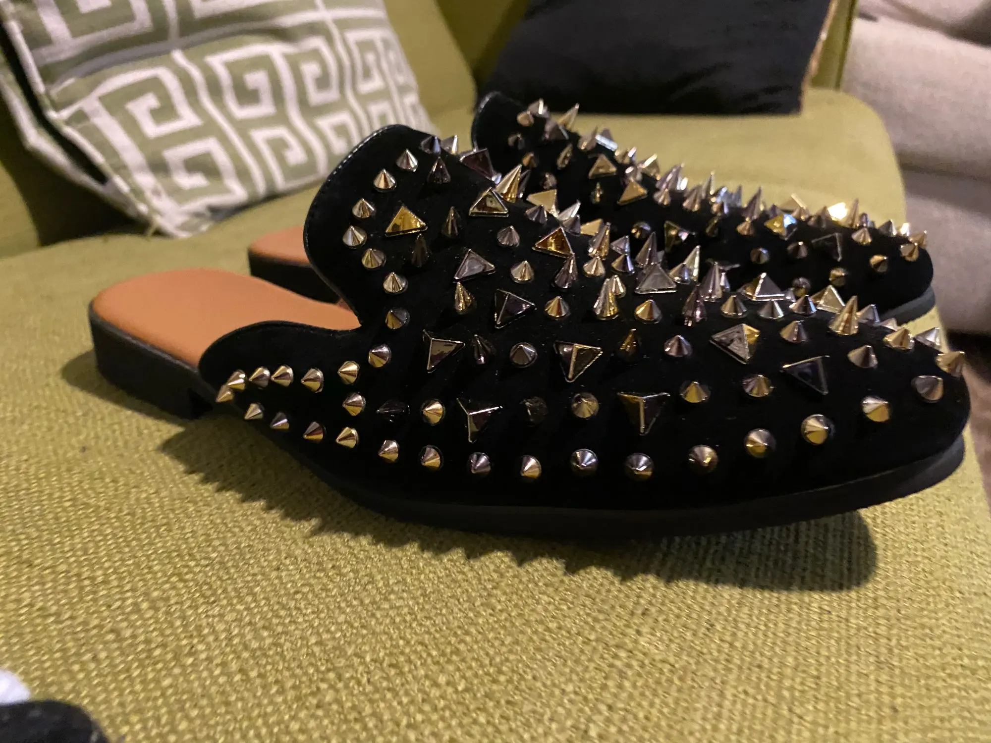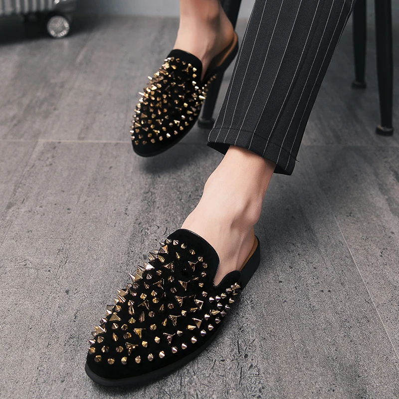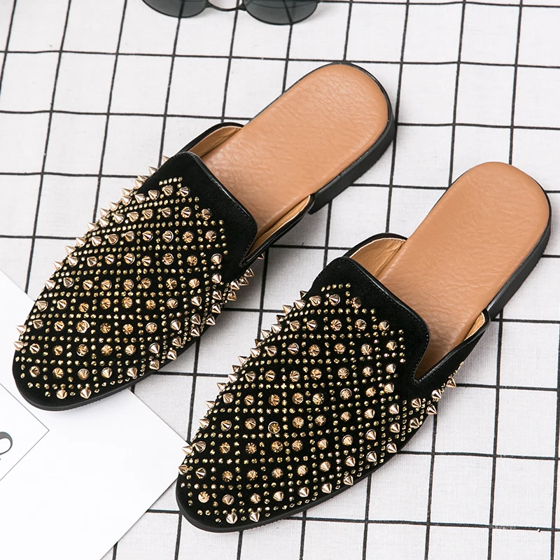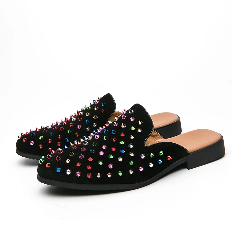 Черные шипы, новинка 2021, Брендовые мужские лоферы, роскошная обувь из денима и металлических блесток, высококачественная повседневная мужская обувь