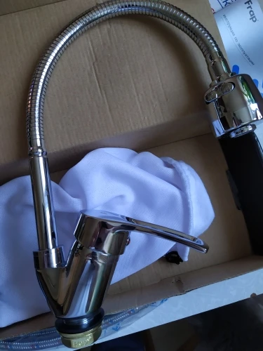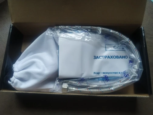 Приехал заказ быстро с курьером за две недели. Упаковка фирменная Frap. Установил смеситель на место и проверил в работе. Работает прекрасно, плавно регулируется температура воды и переключателем на сепараторе выбирается ширина струи. Гибкий слив позволяет устанавливать положение сепаратора. Очень удобно пользоваться и внешний вид хорош. Спасибо за качественное изделие и быструю доставку.