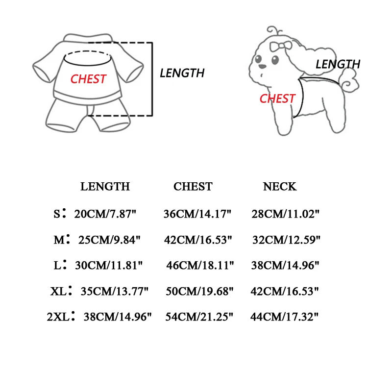 2XL: длина 38 см/14,96 "грудь 54 см/21,25" Шея 44 см/17,32"