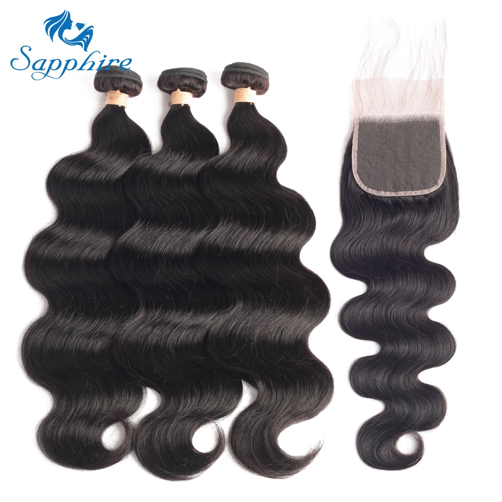 Сапфировые волнистые пряди для тела с закрытием бразильские пряди для волос с закрытием пряди для человеческих волос с закрытием для наращивания волос