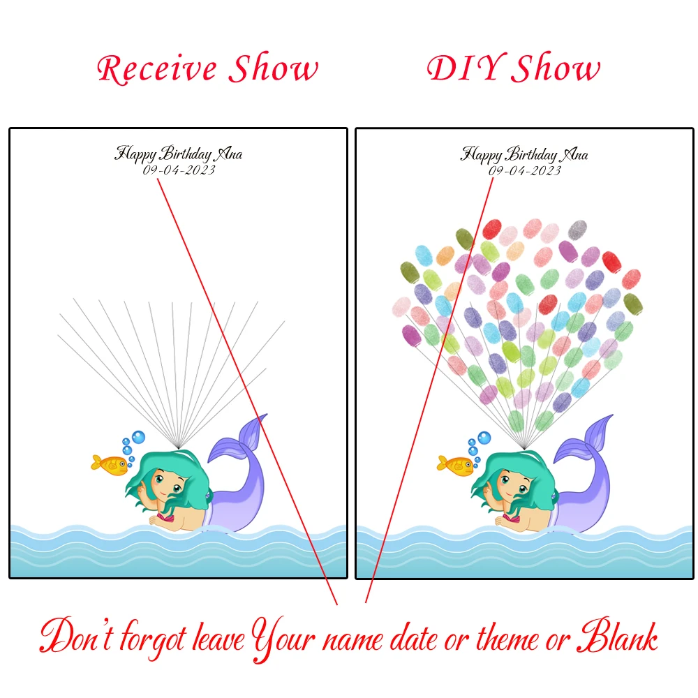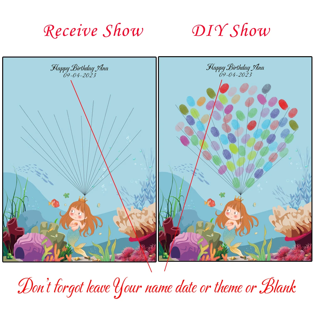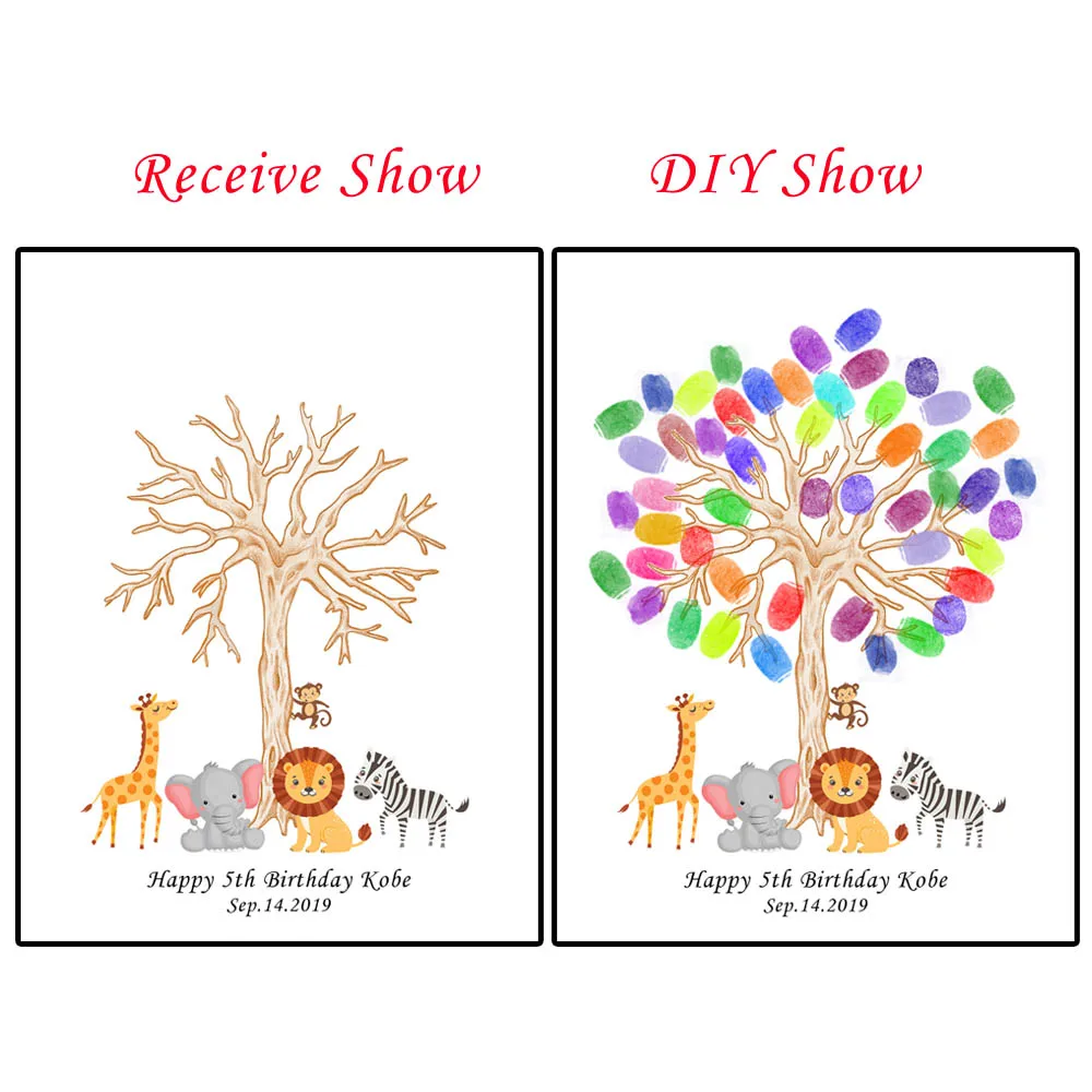 Персонализированная тематическая картина с именем даты отпечатком пальца своими руками для детей на день рождения, сувенир для вечеринки крещения (без рамки, Inkpad в комплекте)