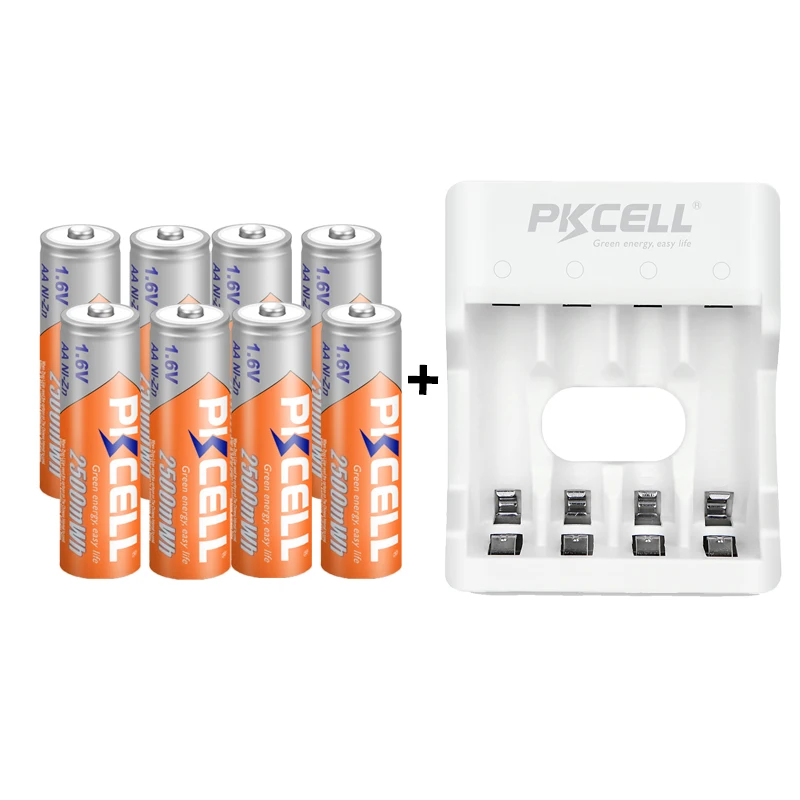 8 шт. PKCELL AA аккумулятор 1,6-1,9 В, 2500 мВтч NIZN Зарядное устройство AA 4 разъема для зарядки 2 разъема, 4 разъема, AAA, ЕС, США, вилка