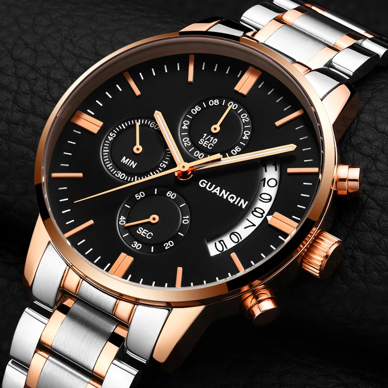 Часы GUANQIN мужские с хронографом, светящиеся водонепроницаемые бр...
