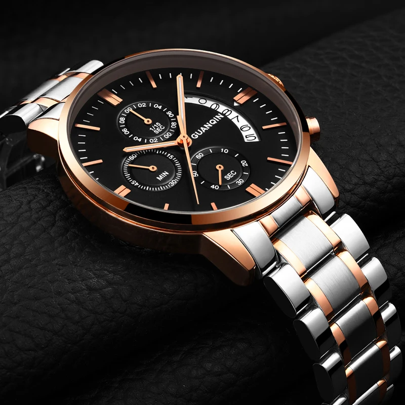 GUANQIN мужские часы, мужские часы, лучший бренд, Роскошные Кварцевые часы, мужские деловые повседневные водонепроницаемые наручные часы из нержавеющей стали
