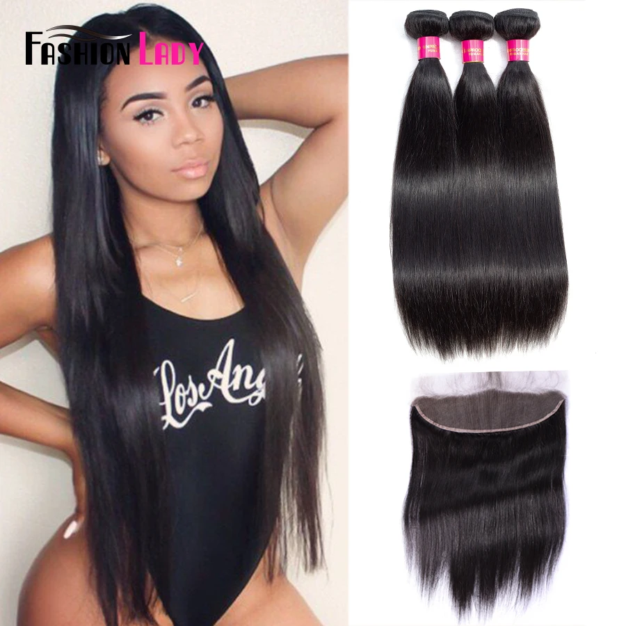 Модные женские предварительно окрашенные бразильские Прямые пряди волос с закрытием Remy человеческие волосы уток 1B с 13x4 дюймовым кружевным фронтальным закрытием