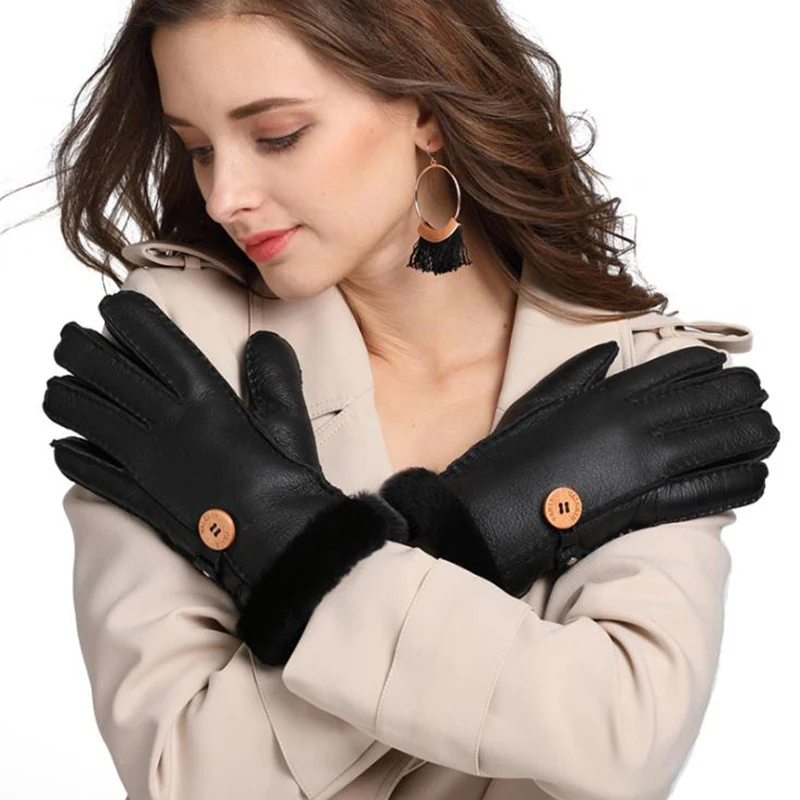 2021 теплые зимние перчатки из натуральной кожи перчатки из козьей кожи утолщенные варежки из овечьего меха перчатки для тренировок высококачественные женские перчатки