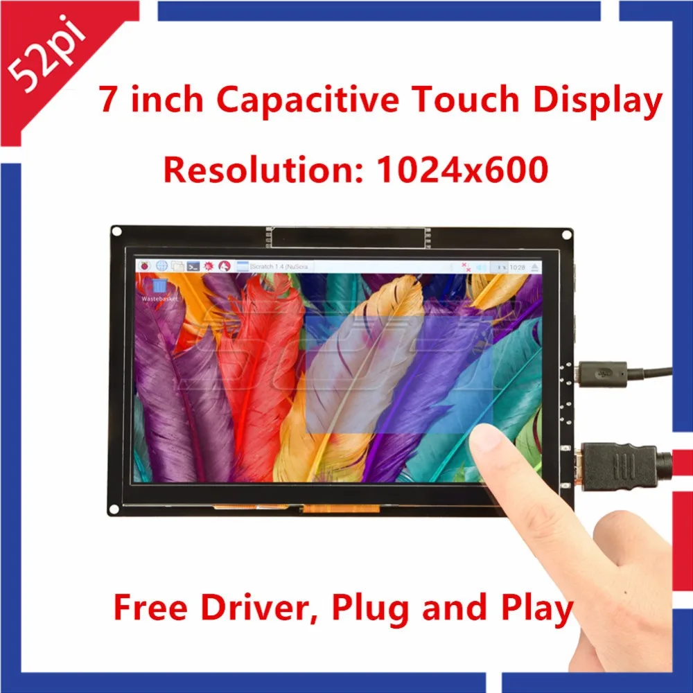 52Pi Бесплатный драйвер 7 дюймов 1024*600 TFT емкостный сенсорный экран для Raspberry Pi 4 B All PlatformWindowsBeaglebone Black
