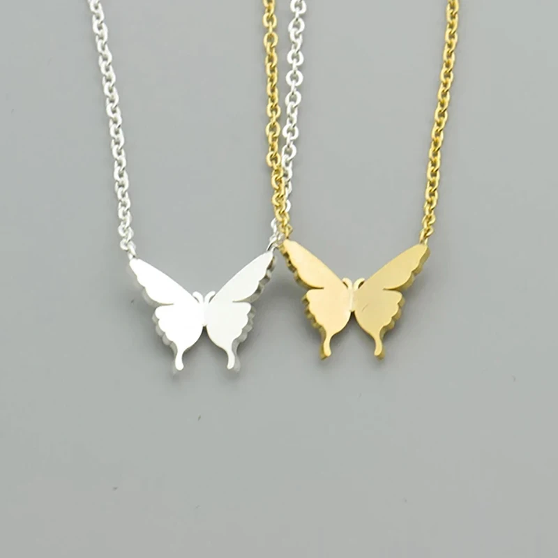 Ожерелья-Бабочки из нержавеющей стали для женщин и девушек, цепочка на шею золотого и серебряного цвета, женское ожерелье с кулоном, ювелирные изделия, женское колье
