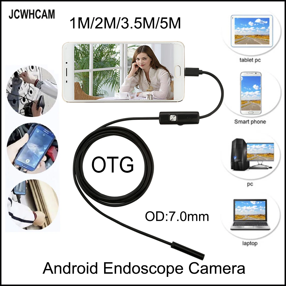 USB-эндоскоп JCWHCAM, 5 м, 3,5 м, 2 м, 1 м, с кабелем 7 мм, водонепроницаемый, с поддержкой OTG
