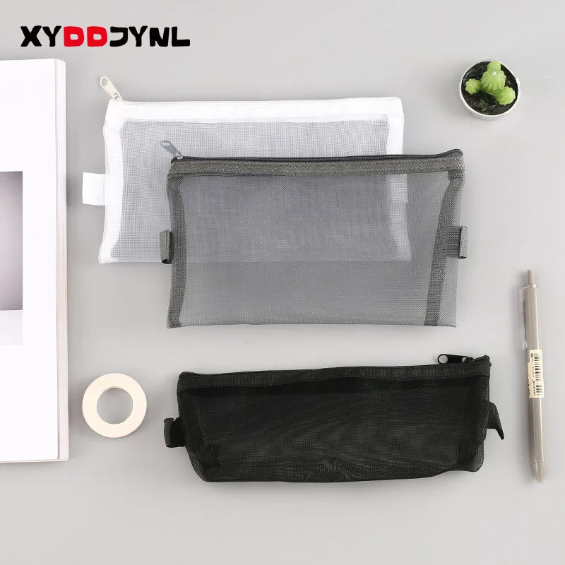 1 шт. Простой Прозрачный сетчатый чехол для карандашей, офисный студенческий чехол для карандашей, нейлоновые школьные принадлежности, футляр для ручек, чехол для карандашей
