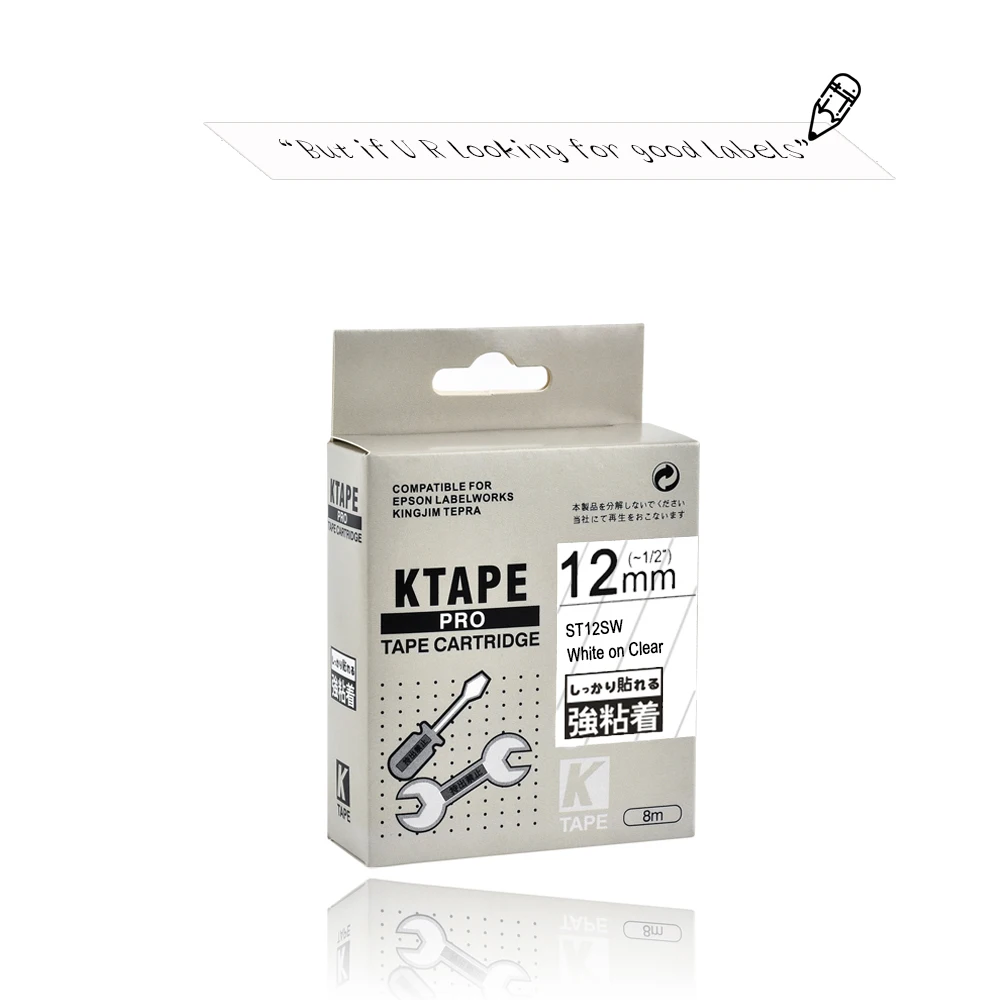 CIDY White on Clear ST12S ST12SWLC4TWV прочная клейкая лента для печати этикеток kingjimepson LW300 LW400