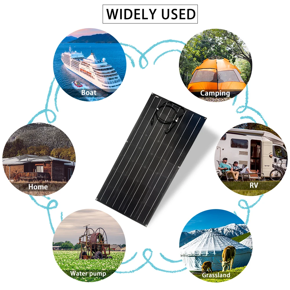 Полный набор для солнечной системы питания 100Вт, 200Вт, 12В, 18В, с гибкими солнечными панелями, 220В, 1000Вт, для зарядки батарей