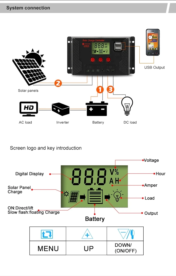 20A LCD SOLAR CHARGE CONTROLLERWITH Y type connector