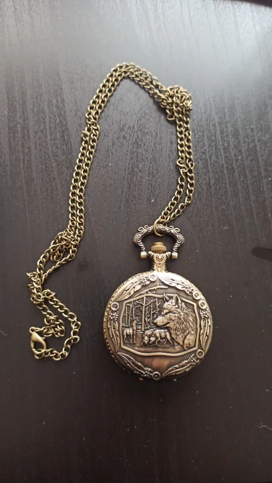 Часы карманные унисекс, бронзовые, с подвеской в виде дикого волка