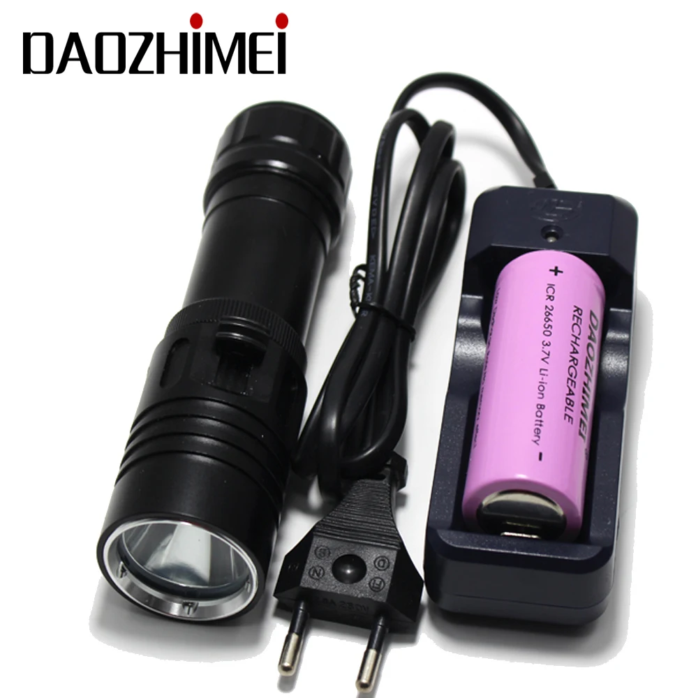 Новый высококачественный светодиодный фонарик XM-L2 X1 5000 люмен для дайвинга, 100 м, водонепроницаемый, с аккумулятором 26650 и зарядным устройством