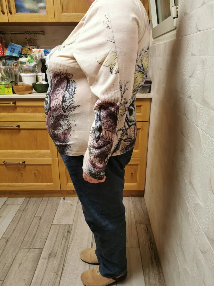 Это,действительно,футболка,только с длинным рукавом. Ткань очень тонюсенькая,но приятная к телу, на свой 50 разм. надо было брать на размер меньше,сама виновата ,некоторые отзывы не правдивые. Спасибо продавцу,быстро отправил кофточку