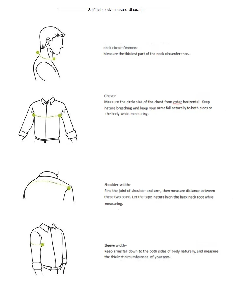 Особенности: 1. 100% полиэстер, качественный материал. 2. Удобные, ручной работы, сделанные на заказ, просто подходят для вашего размера. 3. Сухая стирка, легко очищается. 4. Подходит для свадьбы, бизнеса, ужина. 5. Срок пошива-15-30 дней, бесплатная доставка, быстрая отправка через Aliexpress Shipment. 6. Пожалуйста, посмотрите таблицу размеров, хотите купить костюм, вы можете выбрать размер в товаре, или вы можете измерить свой размер тела, и сообщите нам в сообщении. (Пожалуйста, посмотрите на фотографии, указанные ниже, они могут научить вас измерять ваш размер.) Упаковка: с упаковкой TIAN QIONG. Примечание: этот размер является эталоном для большинства оксидных размеров тела. Если вы не можете выбрать нужный размер, пожалуйста, свяжитесь с нами, мы поможем вам. Спасибо! P.S. Размер определяется вручную, поэтому допускается погрешность в 1-3 см. 1 дюйм = 2,54 см, 1 см = 0,39 дюйма, единицы измерения: см (сантиметр)