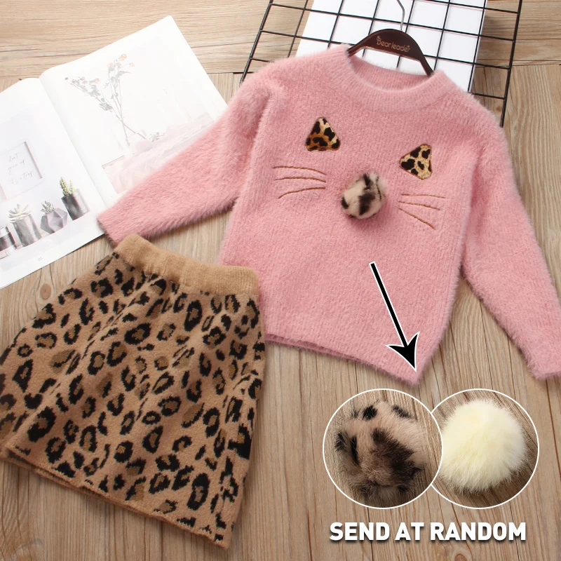 Bear Leaderкомплекты с юбкой для девочек 2021 новый весенне-зимний свитер с длинными рукавами и геометрическим рисунком + юбка, вязаные комплекты из 2 предметов для детей 3-7 лет