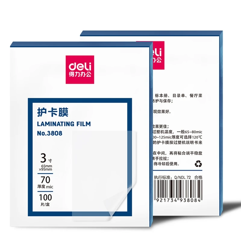 Пленка для фотоламинирования Deli, 3 дюйма, 70 МК, 3 дюйма (65x95 мм), 1 упаковка, 100 листов
