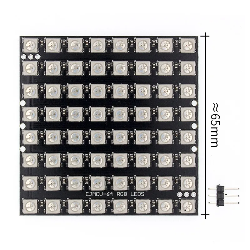 Размер: 65 мм * 65 ммНапряжение: 5 В постоянного токаИнтерфейс: IO8*8 = 64RGBЧип: WS2812b