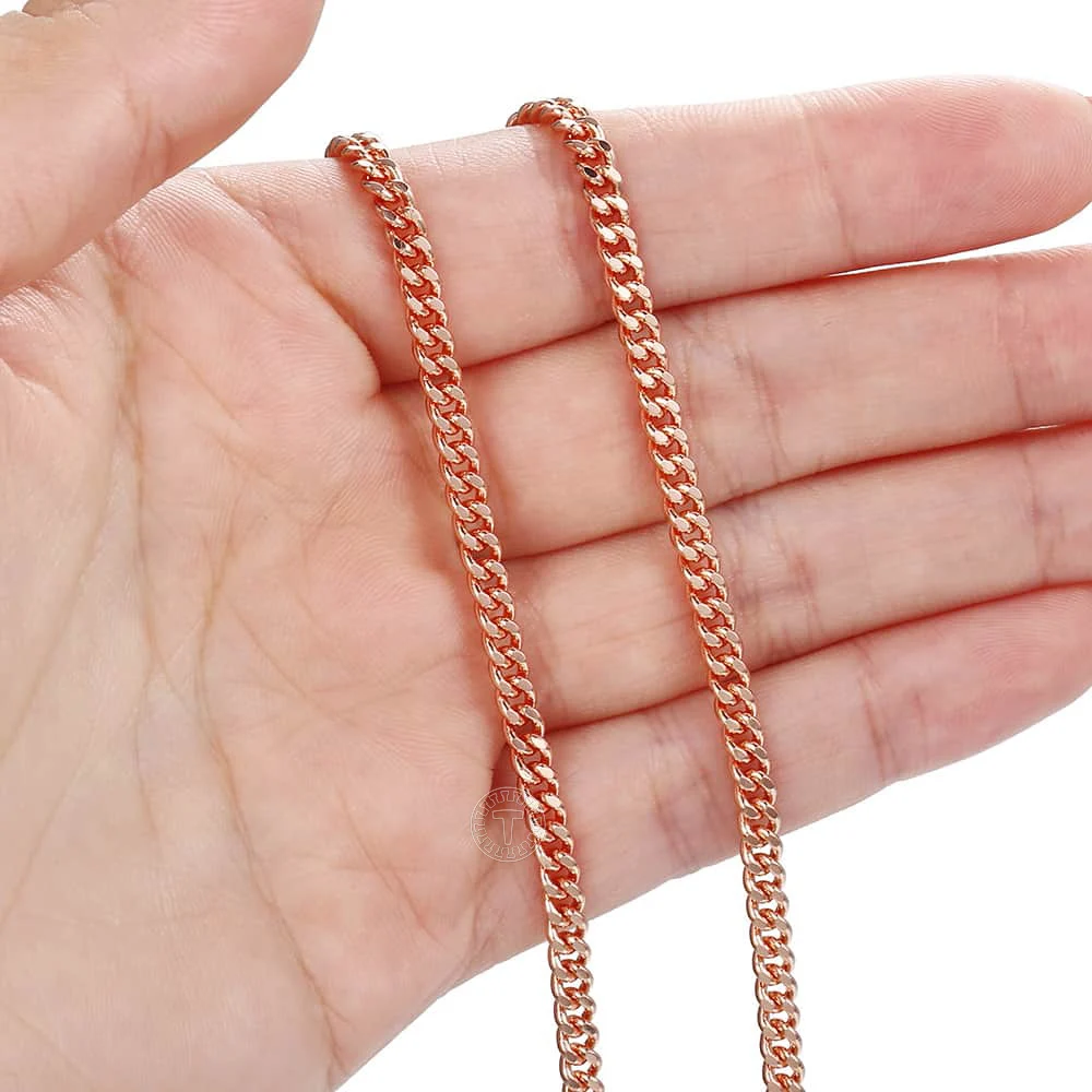Ожерелье Davieslee женское, розовое золото 585 пробы, заполненное Бисмарком, с коваными буквами s, кубинская цепочка Rombo 345 мм, 45-55 см, GN453