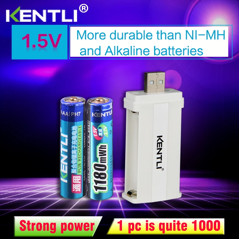 KENTLI 2 шт. без эффекта памяти 1,5 v 1180mWh AAA литий-ионный аккумулятор перезаряжаемый аккумулятор + 2 канала литиевая батарея зарядное устройство