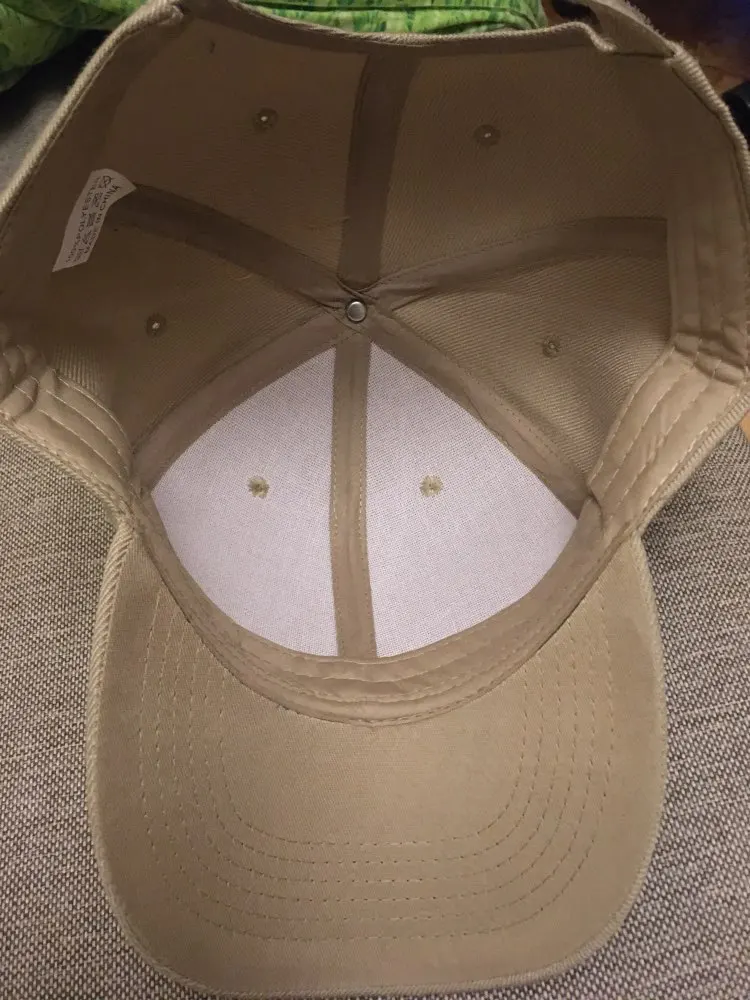 Хорошая , глубокая кепка. Следы клея на козырьке. В целом норм.