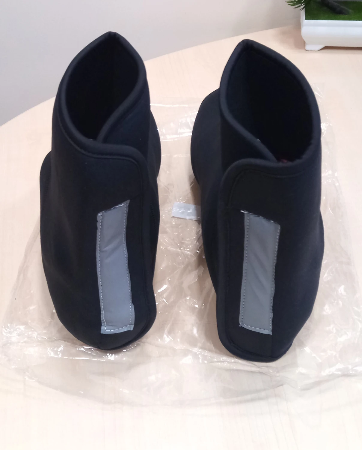 Неопрен толще и теплее, чем у Rockbros. Вместо ненадежной молнии использована липучка Велкро. Нет разъема внизу стопы - тяжело одевать на обувь. Некрасивые в сравнении с бахилами Rockbros. Стойкий запах китайской резины.