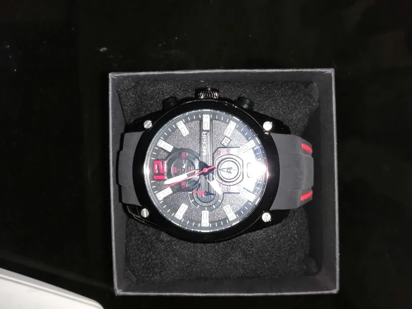 Супер часы по такой доступной цене. Я ставлю ему 4 звезды и 1/2 на самом деле. Руки блестят в темноте, ремешок двойным усилением и материалы выглядят хорошо. К тому же он поставляется в красивой маленькой коробке, и хронограф работает идеально (я начал разворачивать его там, где я не мог его использовать, но внимательно следуйте инструкциям, приведенным в инструкции, Вы без проблем доставляете груз). Единственная причина, по которой я ставлю вас под половину звезды,-это для некоторых деталей ремешка, которые являются чем-то грубым и законченным сверху, что делает его несколько неудобным для кожи-трение и эстетически не выглядит как и остальные часы (выглядит довольно легко. Я оставляю фотографии по сравнению с другим брендом бюстгальтера). PS: я подчеркиваю скорость доставки (17 дней в точности с момента размещения заказа) и большую деталь продавца, который отправил часы с точной датой и временем моей страны. В любом случае, я рекомендую!