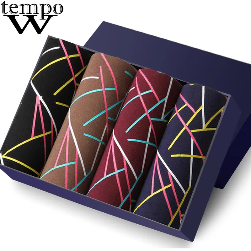 : WTEMPO брендовые боксеры, горящая распродажа, хит продаж, сексуальные мужские трусы-боксеры, трусы шорты новые трусы-боксеры, модные мужские модальный хлопок Принт трусы Оптовая Продажа; 4 шт.лот
