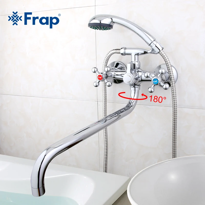 Настенная Душевая система Frap, двойной смеситель для душа с отверстием с двойной ручкой с выпускной трубой F2619-2