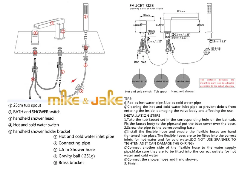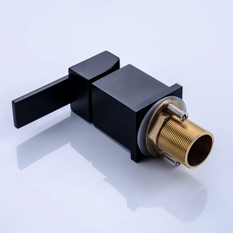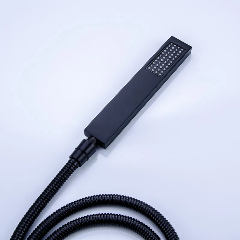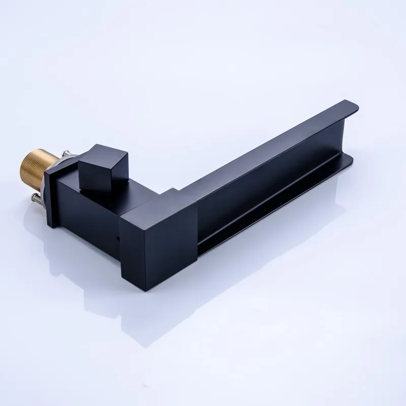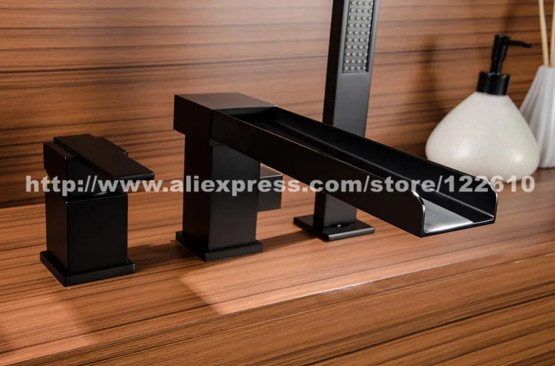 Черный смеситель для ванны с водопадом, с латунным ручным душем, двойной смеситель для ванны, устанавливается на палубу, смеситель для душа MJ0311