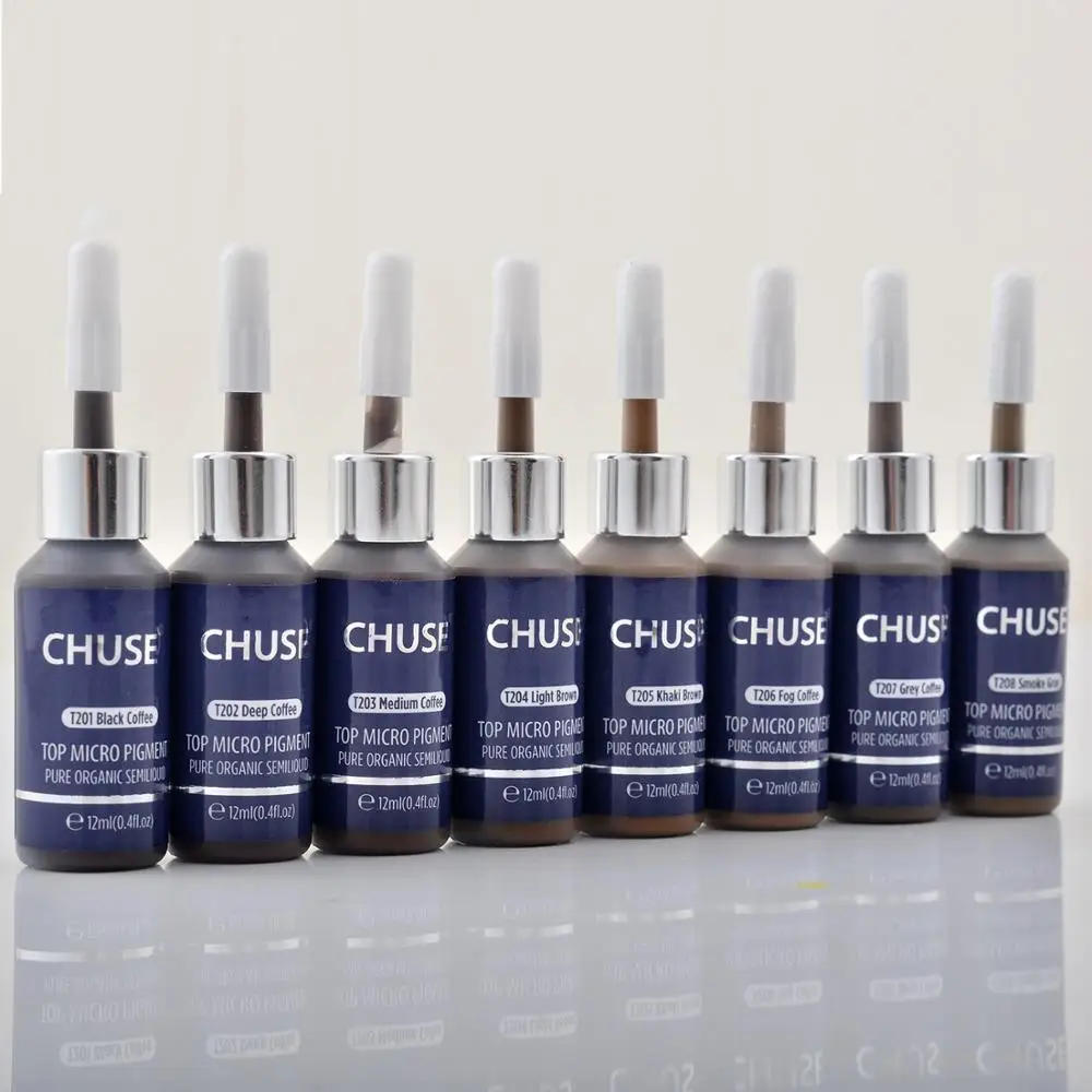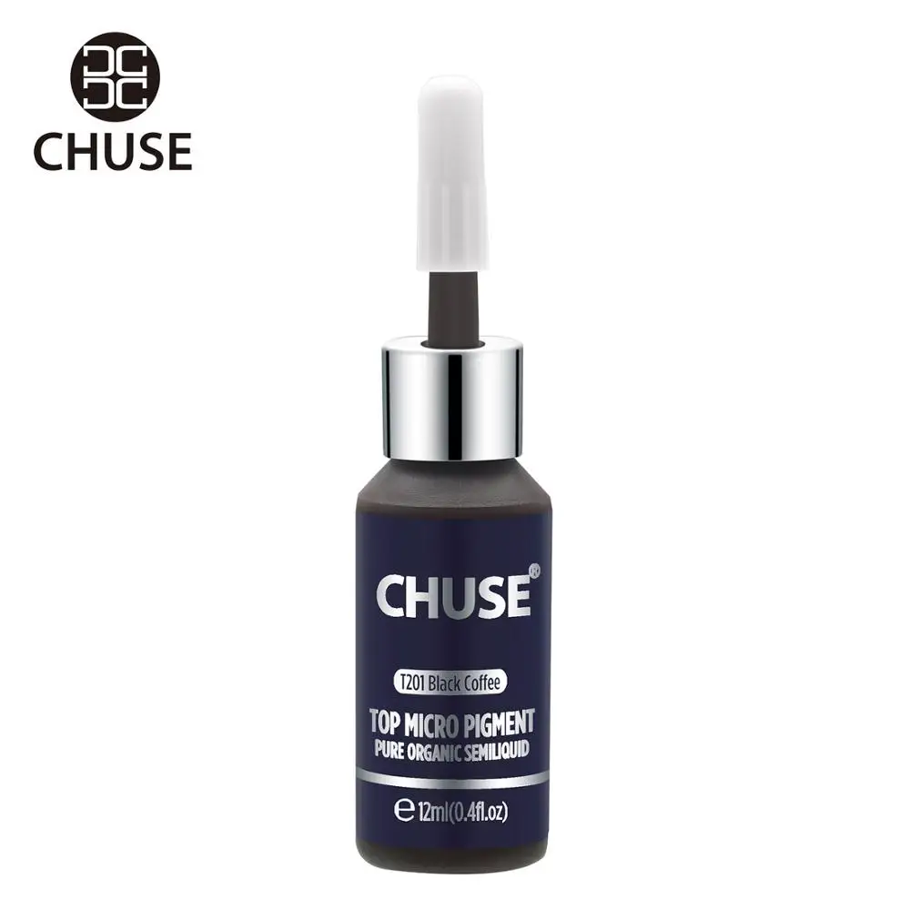 Черные кофейные микропигменты CHUSE T201 для перманентного макияжа, чернила для татуировок, косметический цвет, прошел сертификацию SGS DermaTest 12 мл (0,4 fl.oz