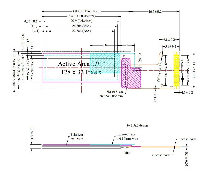 0,91 дюйма OLED дисплей 128*32, ЖК-экран с последовательным портом, Sip экран, 15 контактов, Ssd1306, белый, синий
