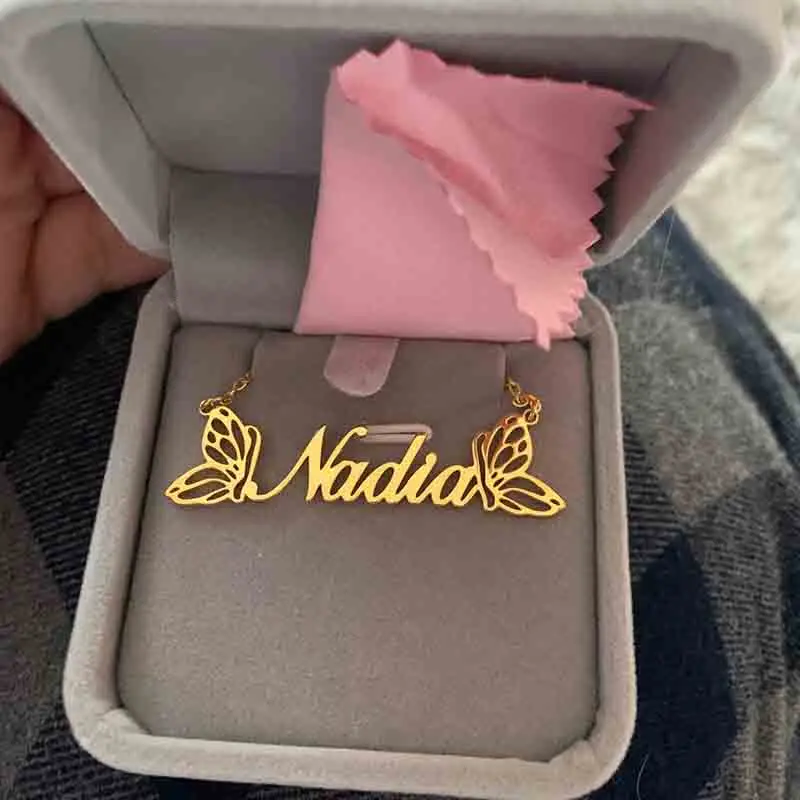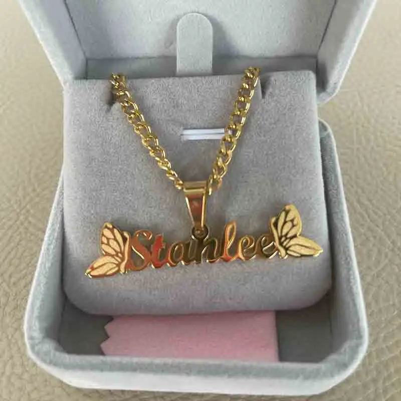 Ожерелье с именем на заказ с бабочкой для женщин, цепочка из нержав...